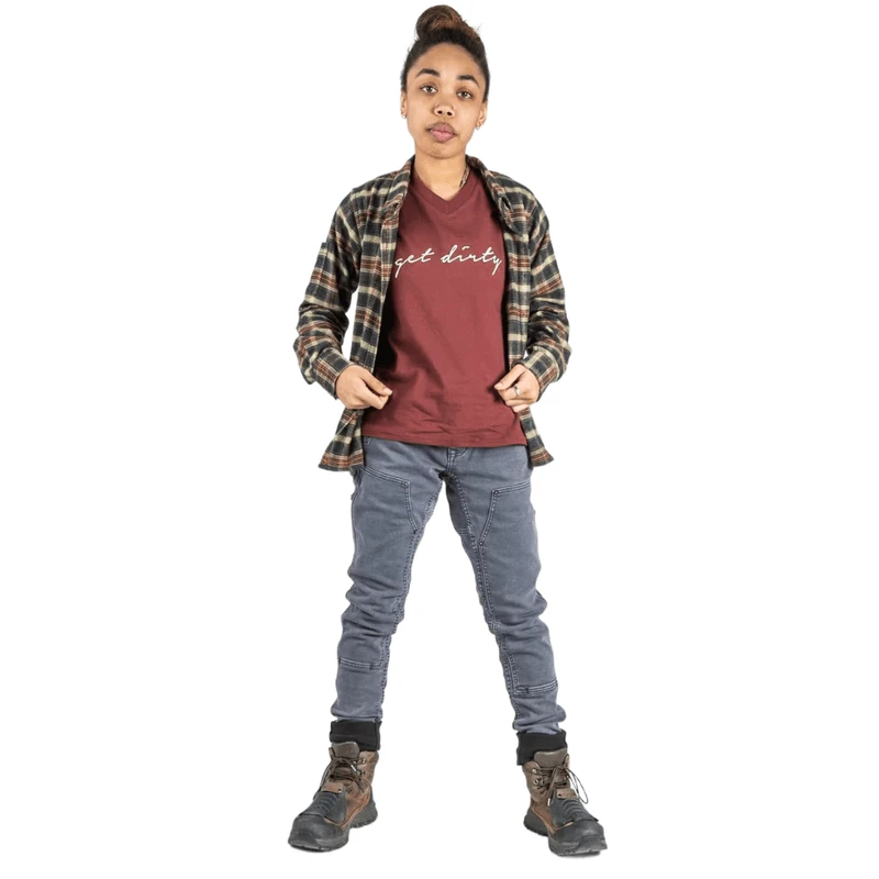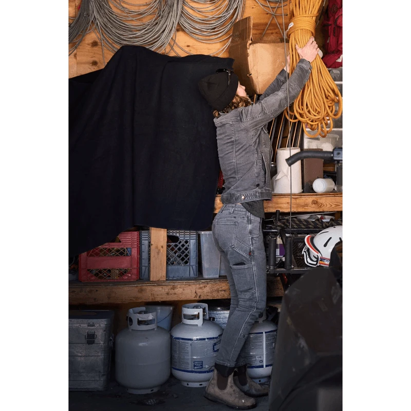 What if your favorite slim-fit jeans also kept you warm? Maven X has gone thermal, and these fleeced jeans are the warm work pants for women. Here’s the thing: women want insulated jeans, but without bulk. Or as we say here at Dovetail, liners are for panties, not pants! How do we retain the flattering fit of our Maven X pant and combat Numb Bum Syndrome? We use an all-in-one hybrid denim, not denim with a fleece lining glued into it. We’ll repeat that, because we know it’s a mindbender. One fabric, two faces. Which means tough denim on the outside, but fleeced and snuggly on the skin.
